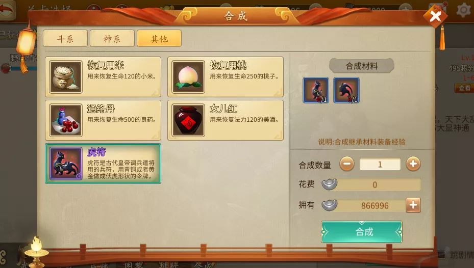 虎符合成方式