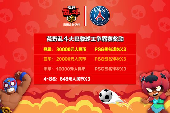 杀进线下决赛的八支战队将获得丰厚的奖金,冠亚季军还能带走无数球迷的终极信仰——大巴黎签名球衣。除此之外,作为荒野乱斗的忠实粉丝和此次球王争霸赛的合作伙伴,大巴黎俱乐部的球星们还会给参赛队伍和中国球迷们带来更多惊喜吗?让我们一起期待吧!