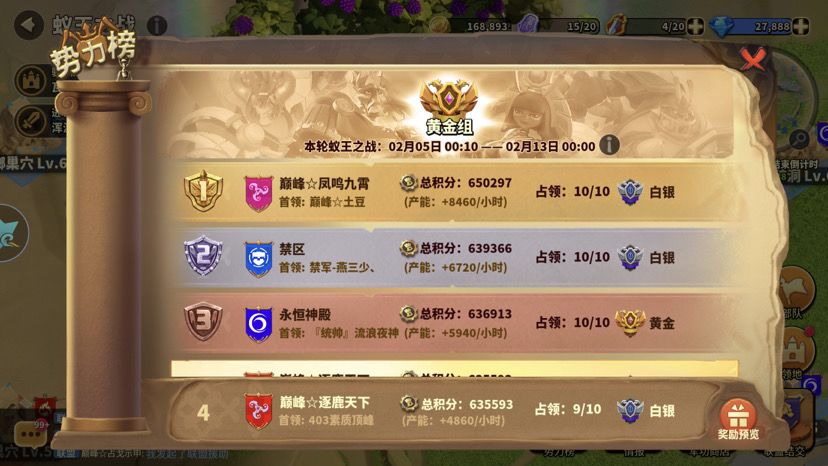 10.就在蚁王之战进入白热化阶段,最蚁王快结束的前一天,巅峰疲于松懈,逍遥抓住时机,一波拿下泥炭,说时迟那时快,毕竟实力在那里,巅峰主盟大树已让给凤鸣,内圈空虚,逍遥势如破竹,横扫内圈,直指大树,眼看凤鸣抵挡不住进攻,巅峰主盟纷纷卡战支援,最终保全大树,正所谓,千里之堤,溃于蚁穴。