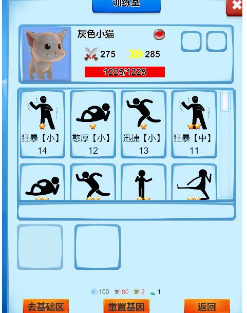 当进入基因区后可以点击对应宠物选择宠物,然后点击进行训练来进行训练