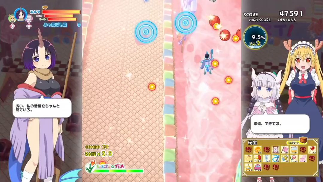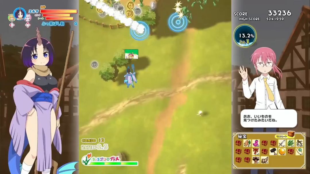 《小林家的龙女仆:炸裂‼ 呆头龙☆吐息》是一款以《小林家的龙女仆》为基础的飞行射击游戏,玩家可以在游戏中切换托尔、艾尔玛等作品中的人气角色进行闯关,不同的角色提供的子弹和攻击风格也会不同。