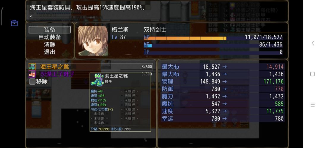 此时速度已经远超过支线boss,可以去19层拿大地之神的巨剑,大地之神