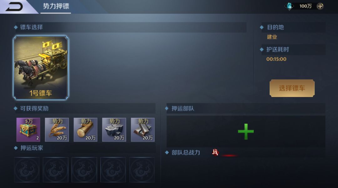 注:势力押镖与单人押镖不同,无法刷新镖车品质。
