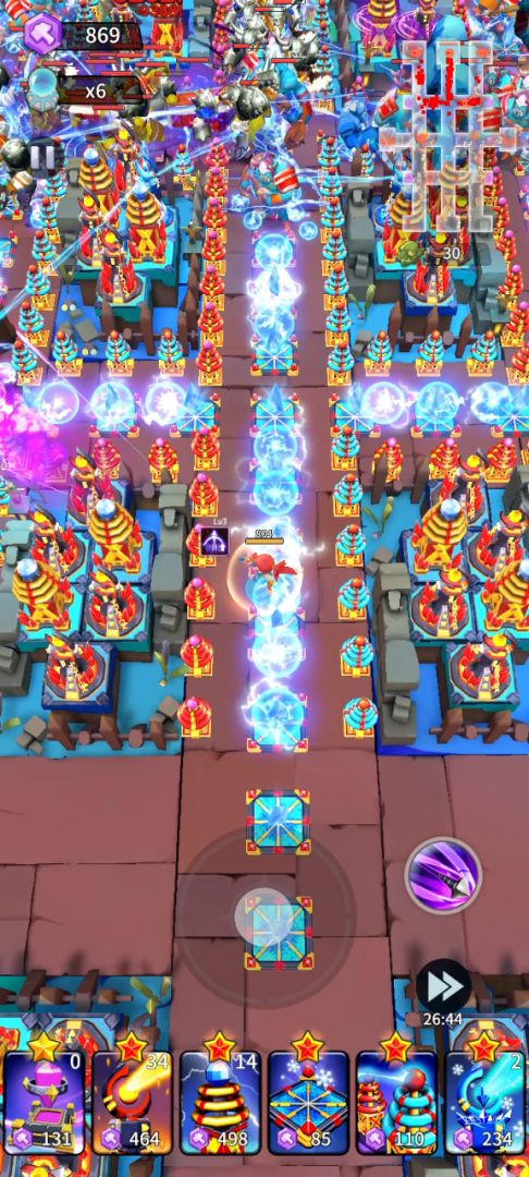 前期采用少量的输出和大量的能源发育,能源塔数量根据自己输出塔科技等级而定,快顶不住了就慢慢卖能源塔。地面陷阱可以自己随意摆,但一定先放减速再放雷陷阱,要不然没法叠加。地面陷阱的多少很大程度影响手机卡顿。(第一段视频后期直接卡黑屏了,第二次就少放了些地面陷阱)