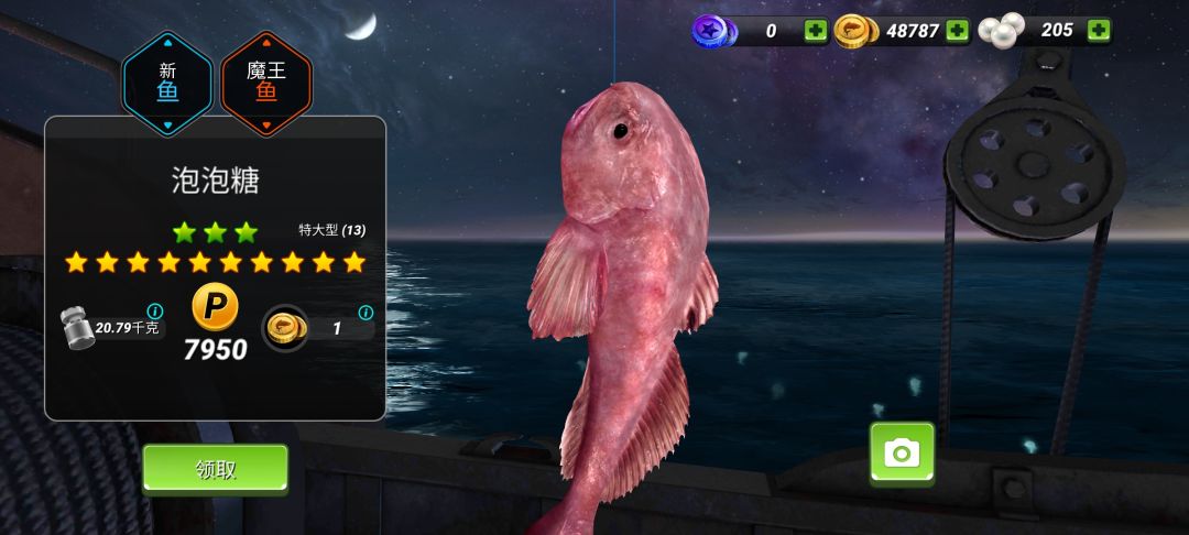 今天新开了个深海渔场,人家本来在那认真的钓任务鱼做任务,没想到突然就来了个魔王鱼。而且这个魔王鱼钓上来看着跟深海其他的鱼饵画风也有点不一样,一点不凶恶,反而有点蠢萌,名字竟然叫泡泡糖。。。很好奇这名字咋来的,还有谁知道这条鱼的学名吗?