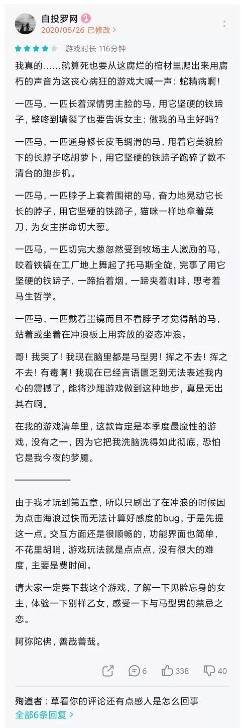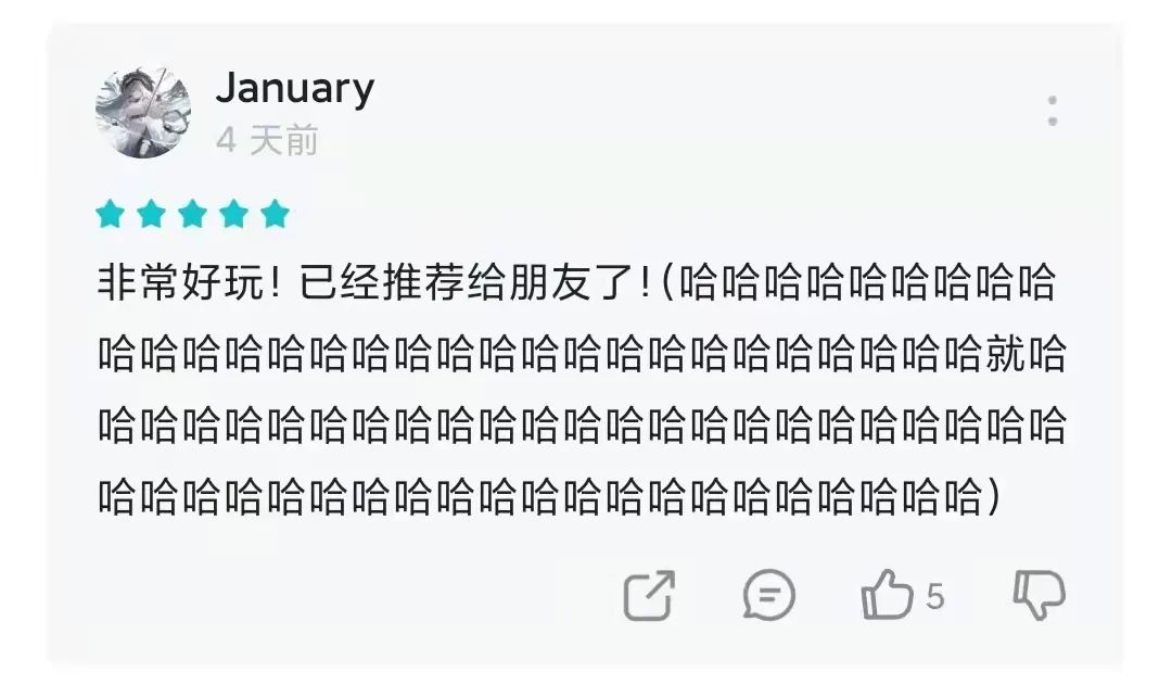 最近发现有一款游戏的评价里“哈含量”严重超标了: