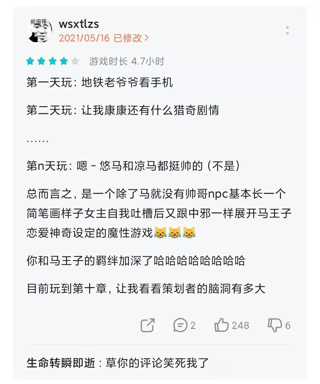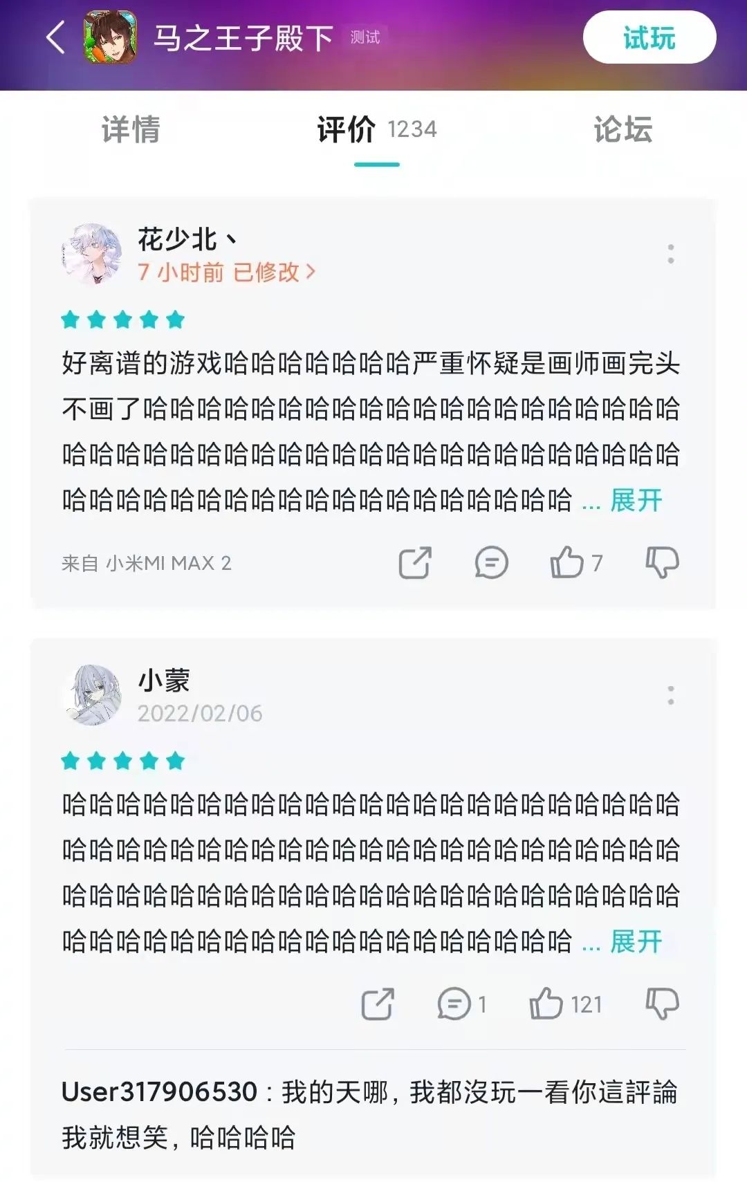 好家伙你们吵到我眼睛了喂!上次看到评价里这么多“哈”的游戏还是在上次。实际上《马之王子殿下》并不是新游戏了,2017年的时候就火过一把:
