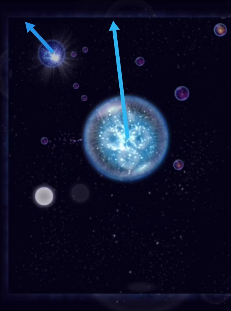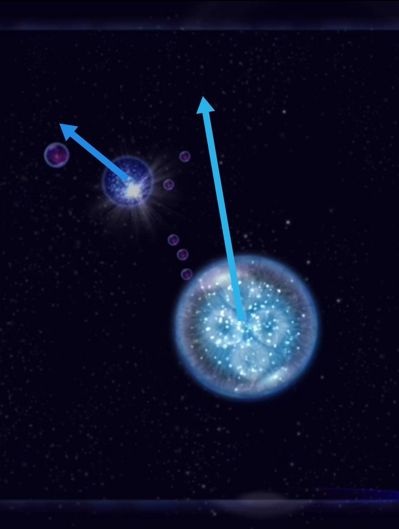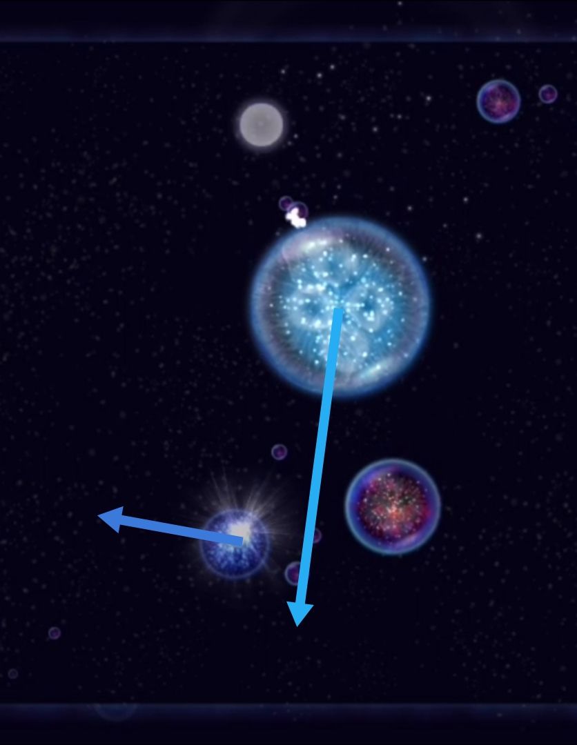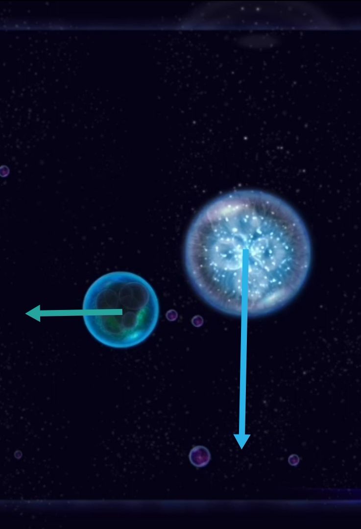 ④疯狂躲避:面对~,向大物体行进方向的反方向抛射尘埃,同时向大物体垂直于行进方向的方向抛射大量尘埃。(生命体一般在靠近边界时才进行这种躲避)