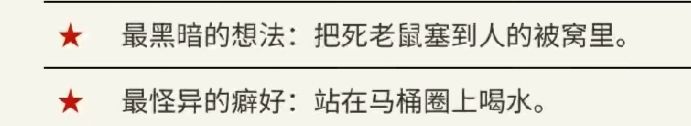 Pi这条线印象很深,因为一开始就非常虐,后来还把三个人的身份重合起来,和大黄,警官,姐姐,弟弟,基仔,萤好多人都有交集,还从大黄的视角知道了关于家庭的真相虐得胃疼,还有就是Pi真的好帅(大雾),幸好最后和大黄的结局暖到了,发现一个小细节就是,大黄的档案里面提到大黄最黑暗的想法就是把死老鼠放进人的被窝里: