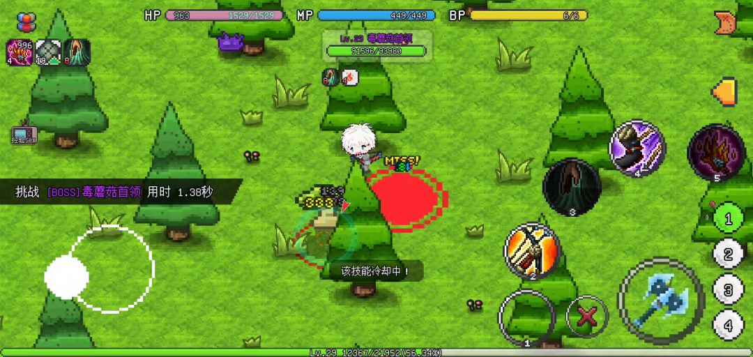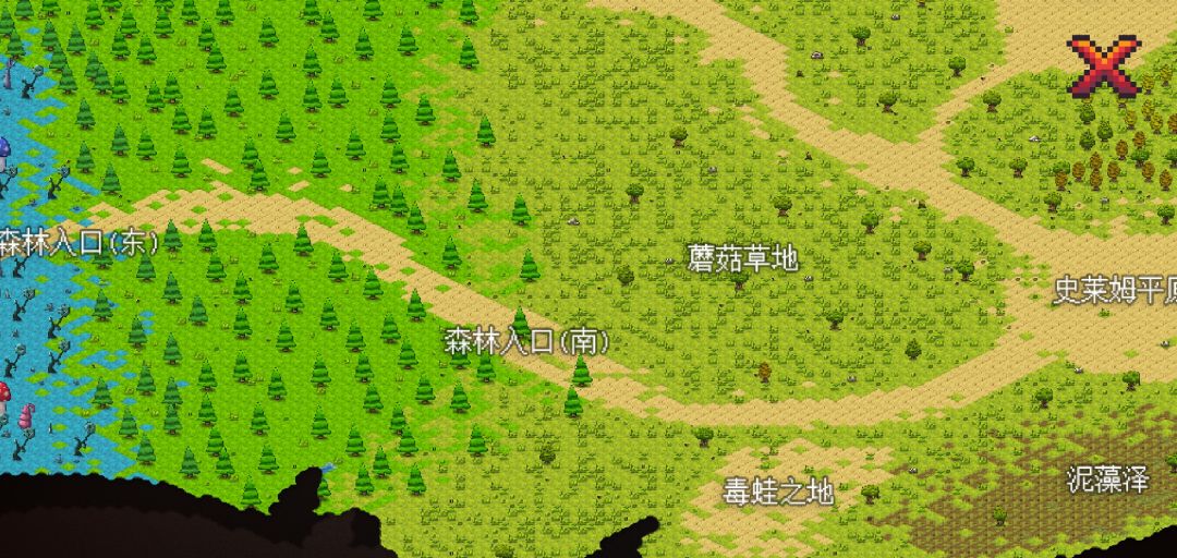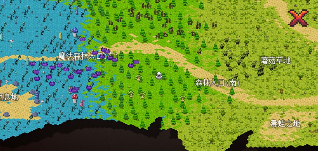开始打毒蘑菇王,位置在森林入口南左下