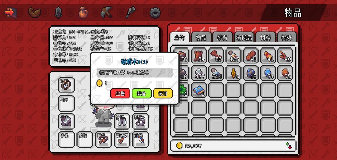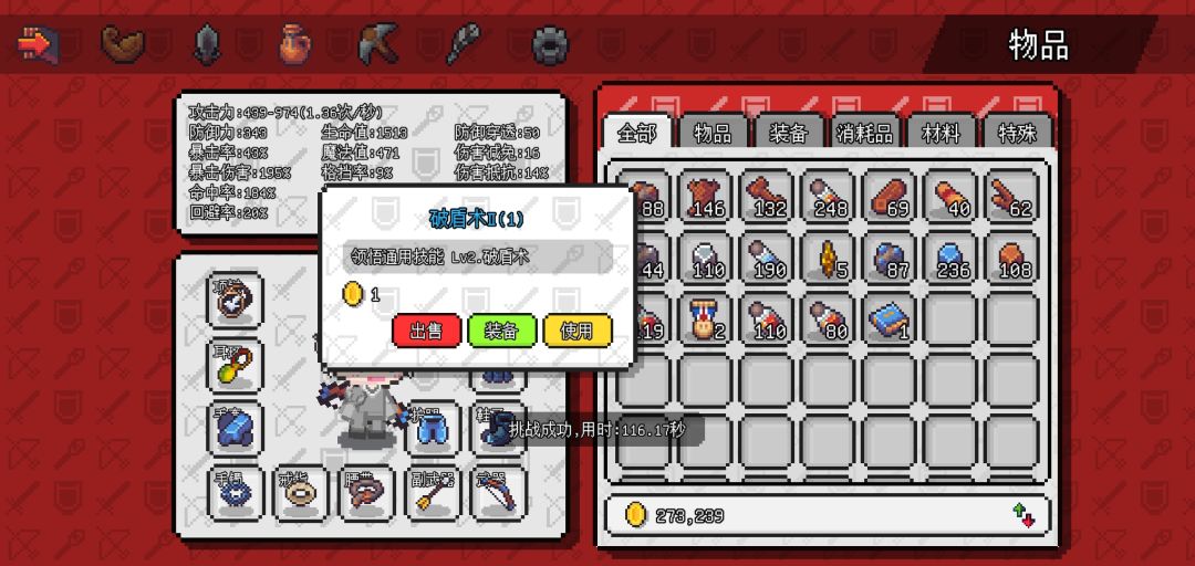 打完会掉落这两个,一个是提升破盾术等级,一个是boss掉落物