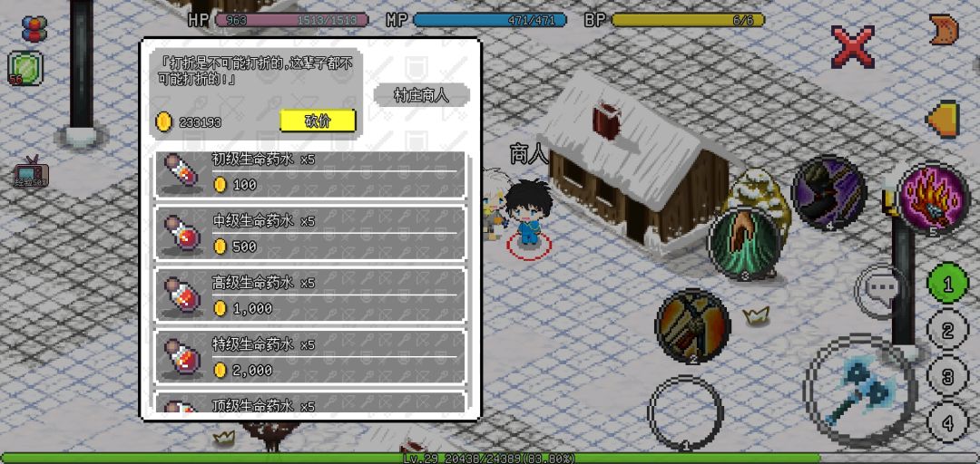 boss打不过要用药水可以传送到寒城,里面的商人可以买到所有等级药水