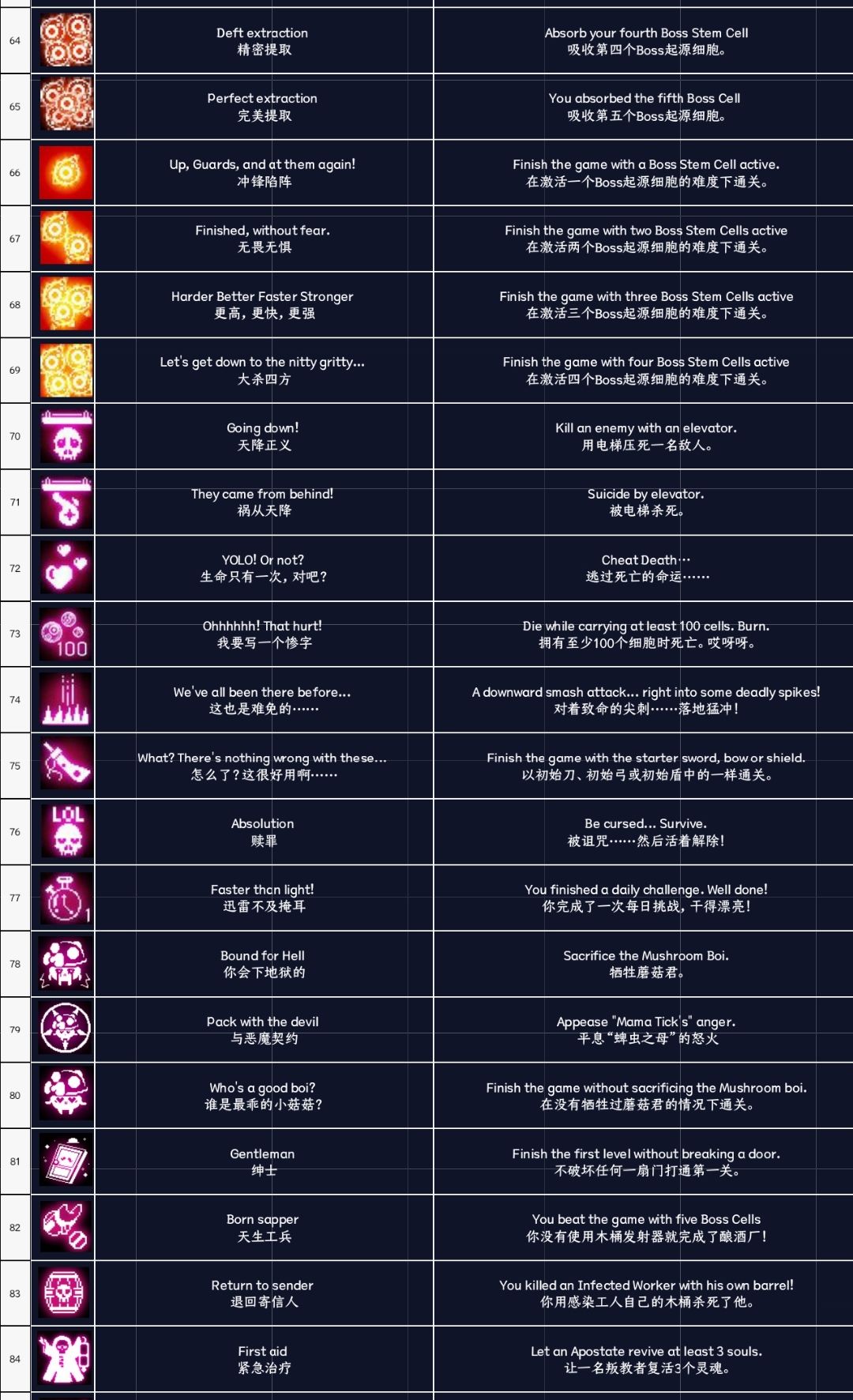 重生细胞全成就及解锁方式(如果刷成就记得用普通模式打喔)
