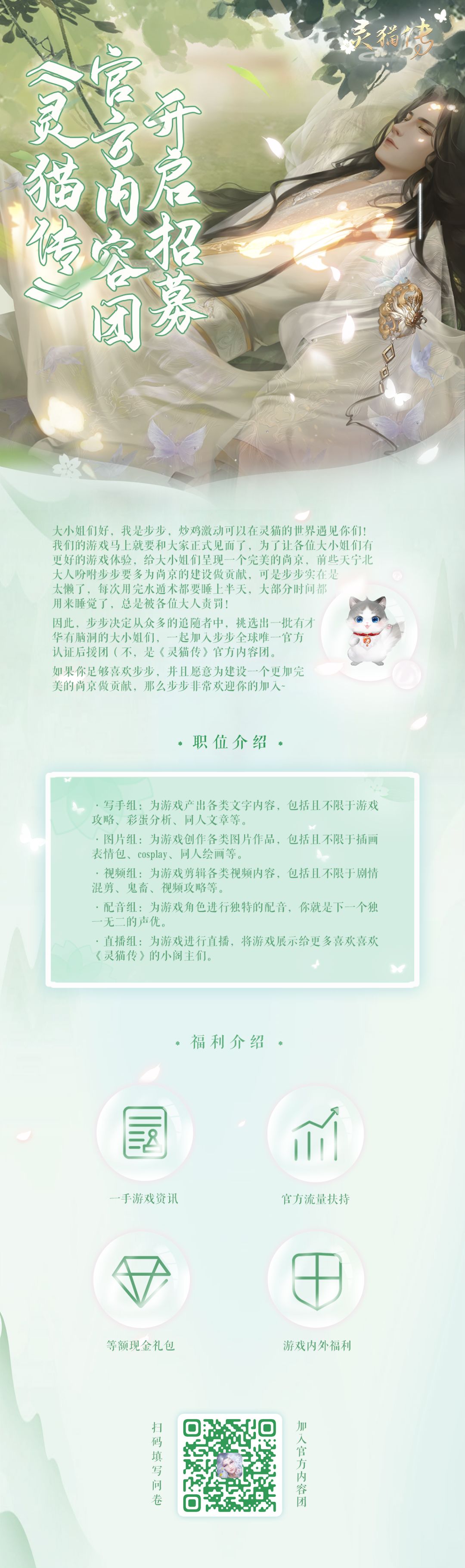 直播组:为游戏进行直播,将游戏展示给更多喜欢喜欢《灵猫传》的小阁主们。