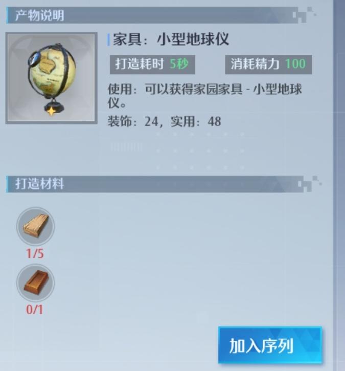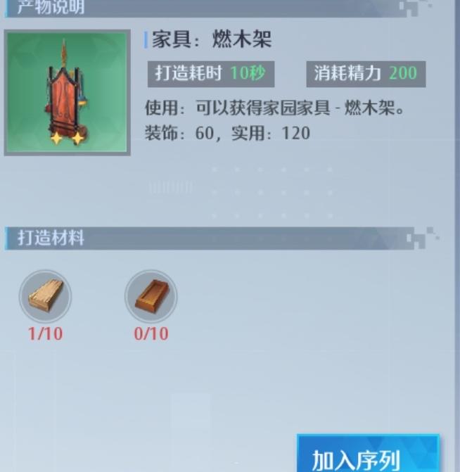 白色家具之中数值较高的(加材料一个160精力),6个加材料准备完