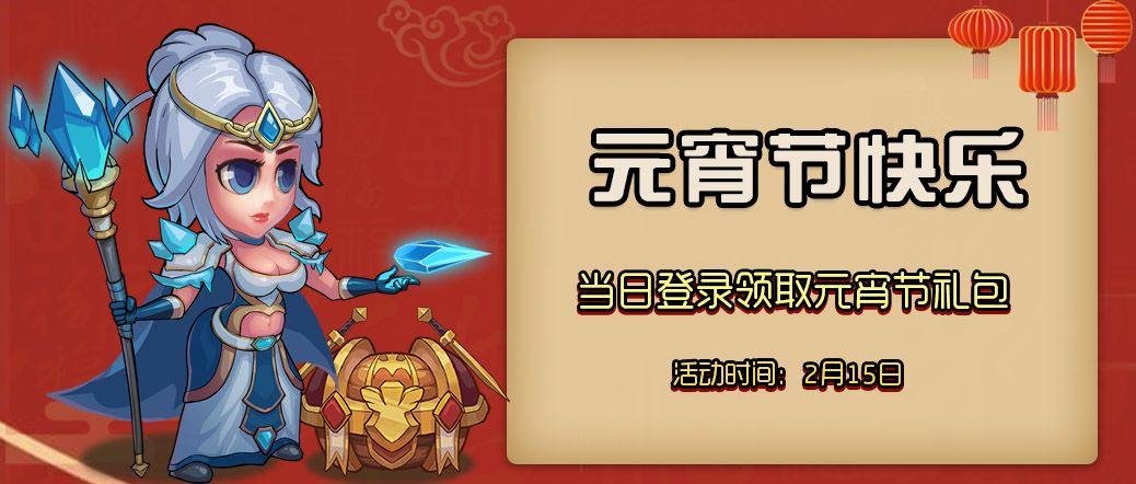 明天便是我国一年一度的元宵佳节,我们为各位勇士准备了一份节日小福利,元宵节当天登录游戏即可领取,一起欢欢喜喜闹元宵!