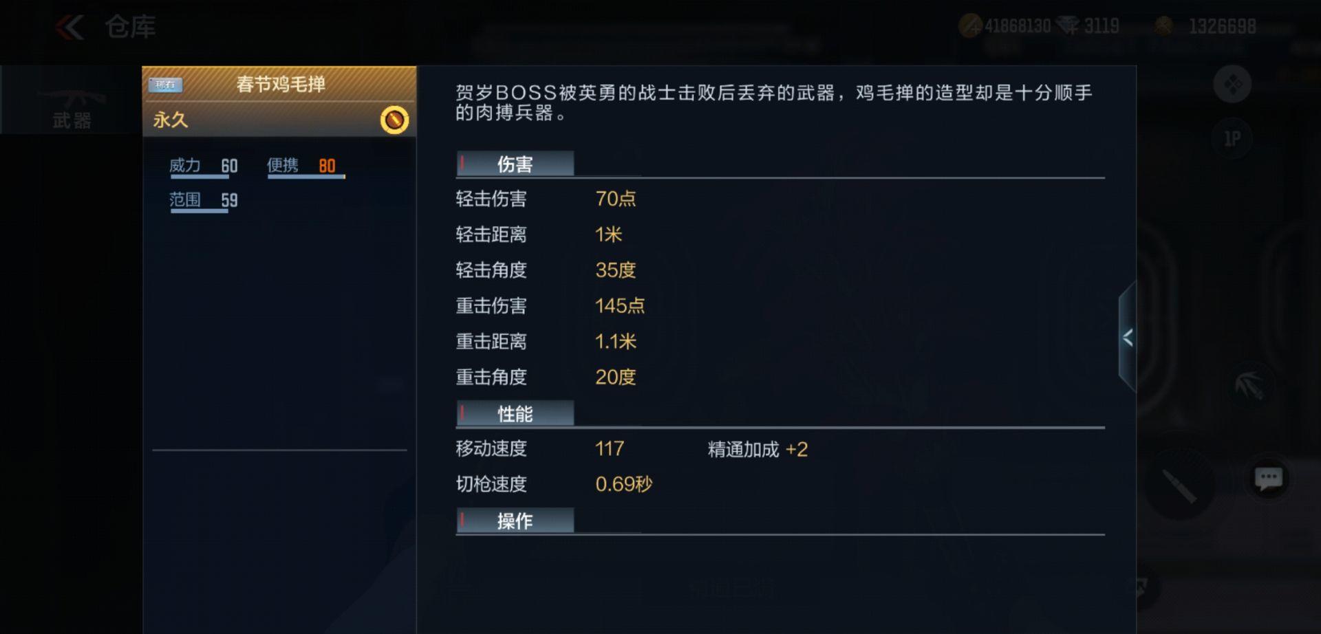 我们简单对比一下两者的数据情况,带刺的玫瑰作为紫色品质的武器,在基础属性方面,虽然重击伤害不及鸡毛掸,但是在范围、距离方面竟然要强过金色品质的春节鸡毛掸!这朵既有颜值,也有攻击性的玫瑰怎能不爱?