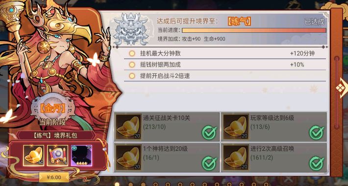 境界分为13大境界,玩家可以通过完成境界内的任务可以获得奖励并提升境界等级,玩家提升境界等级后,可以获得大量特权以及属性加成。