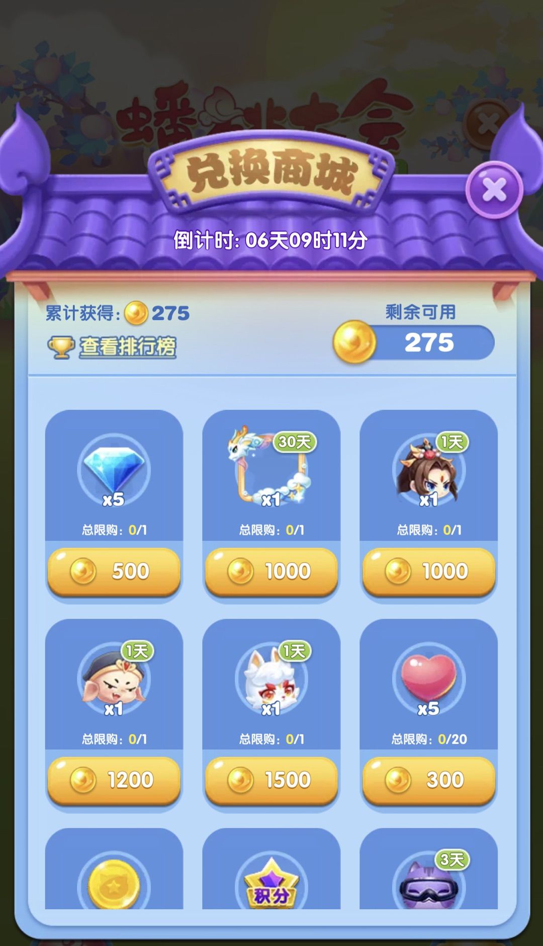 可以在兑换商城兑换钻石&高分道具