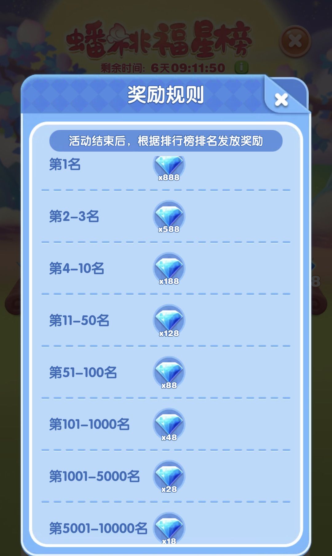都将获得18-888不等的钻石奖励!