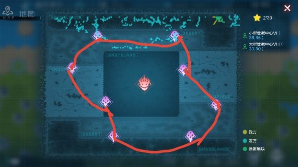 6.最后一点,尽量去连线,这样我们就能节省很多精力就能直接打到boss了,到后期可以占领的据点会变多,尽量战高级据点,就能多拿元素资源升级,提升战力轻松过副本。