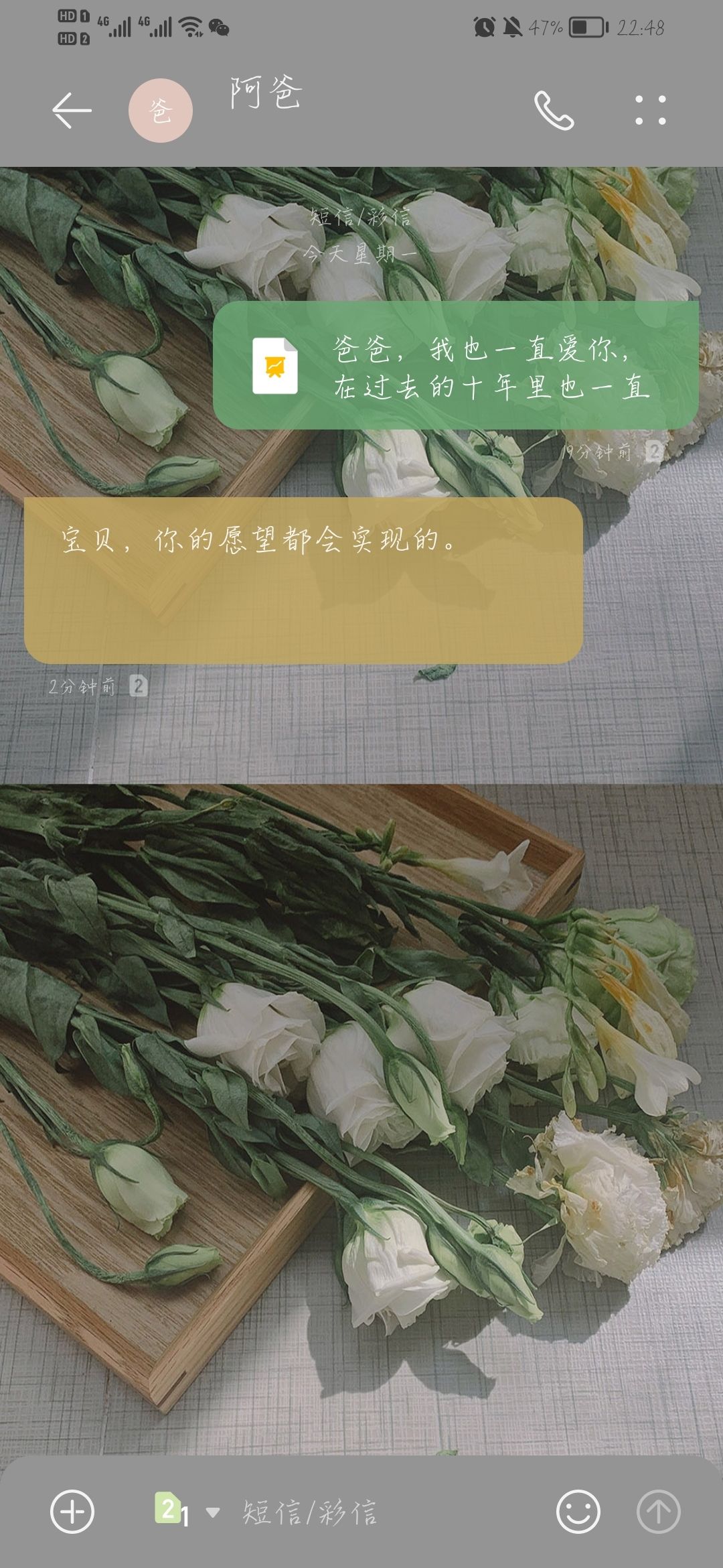 在发这个帖子的时候收到了爸爸的回复,本来很低落的心情瞬间回升,于是截图想把我十岁以后的十一年里的最快乐的事情分享给山友,以及爸爸的祝福。谢谢你看完这些碎碎念的话。
