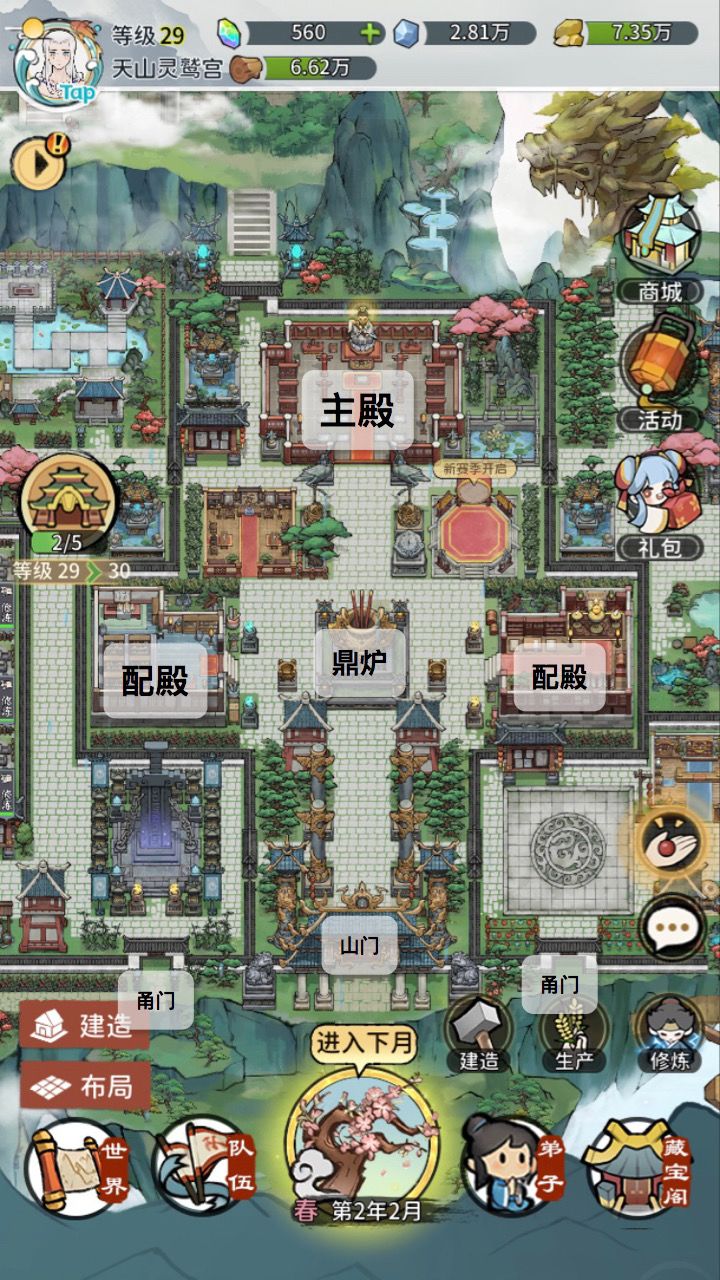 1. 主岛因为是门面,所以布局主要考虑了美观性以及传统道观的基础功能区域,所以没有什么对游戏本身很重要的建筑。(一棵树一棵花地装饰真的好累!)