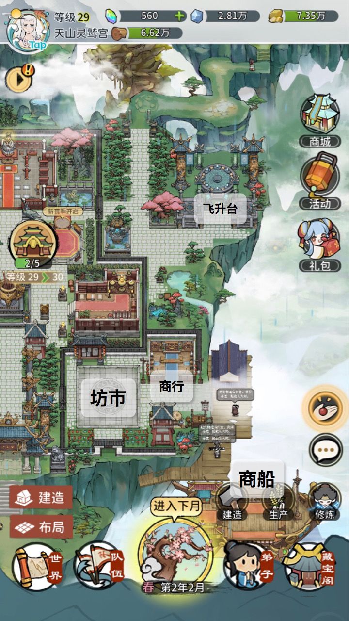 3. 因为商船在主岛的右下角,所以把商行和装饰用的坊市区域也都一起放在右下角。