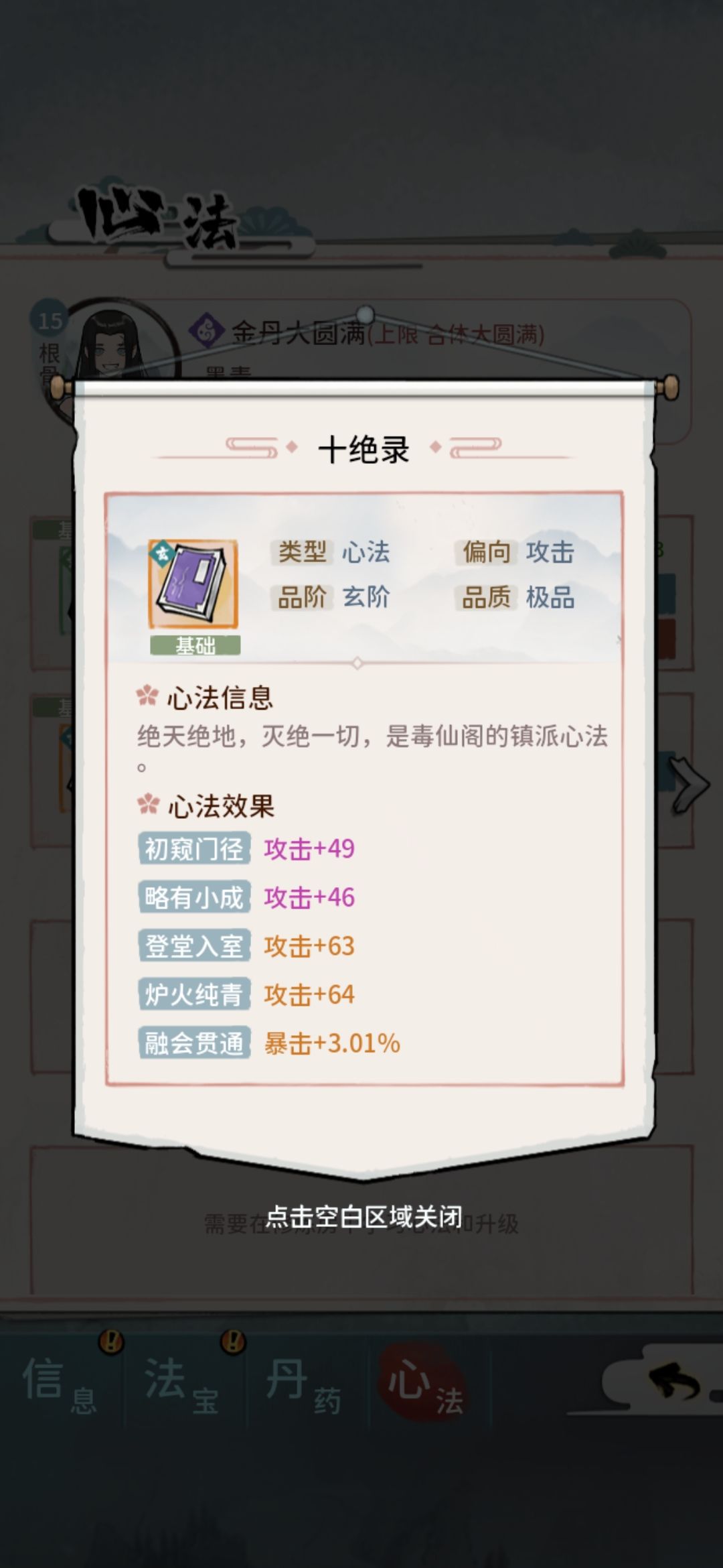 前面只用地阶心法就行,玄阶留着自己过渡用,天阶不急,等化神后再考虑,有了的话优先卖掉,不然卡进度