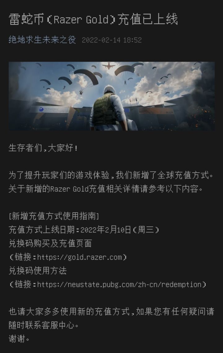 微信公众号:绝地求生未来之役 2022-02-14 18:52