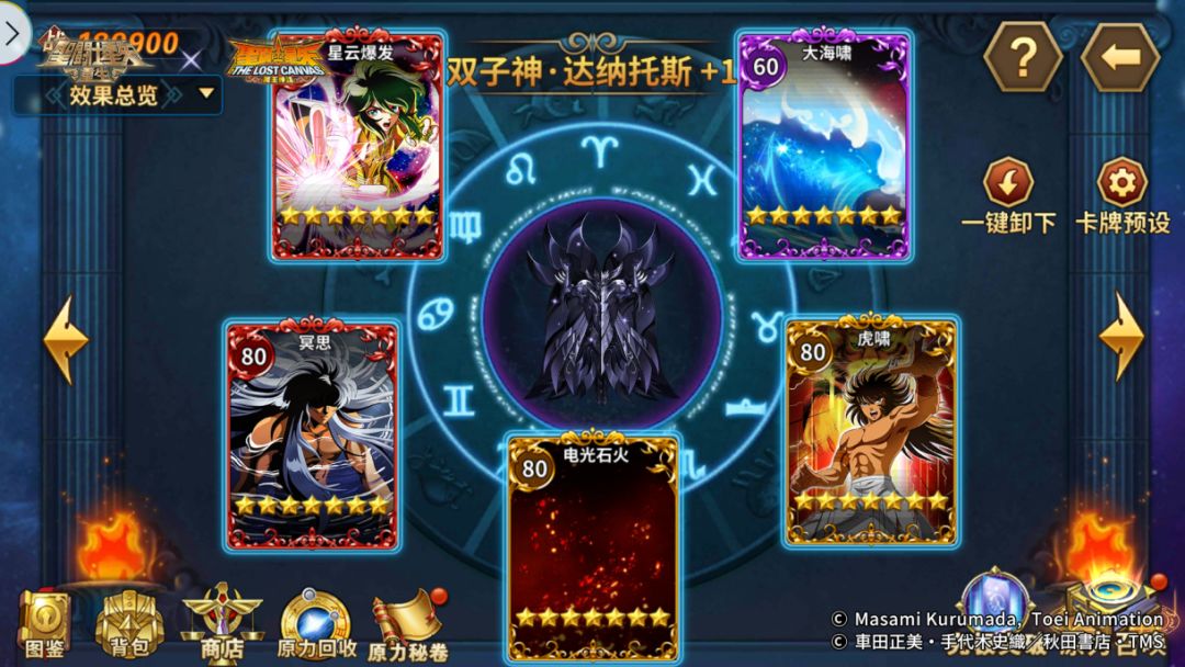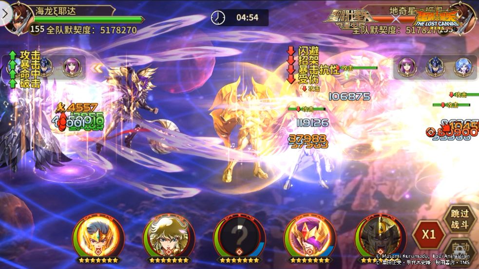 我方阵容:阿赖耶识·沙加、双子神·达纳托斯、邪神·洛基、神圣水瓶座·卡妙、神圣金牛座·阿鲁迪巴