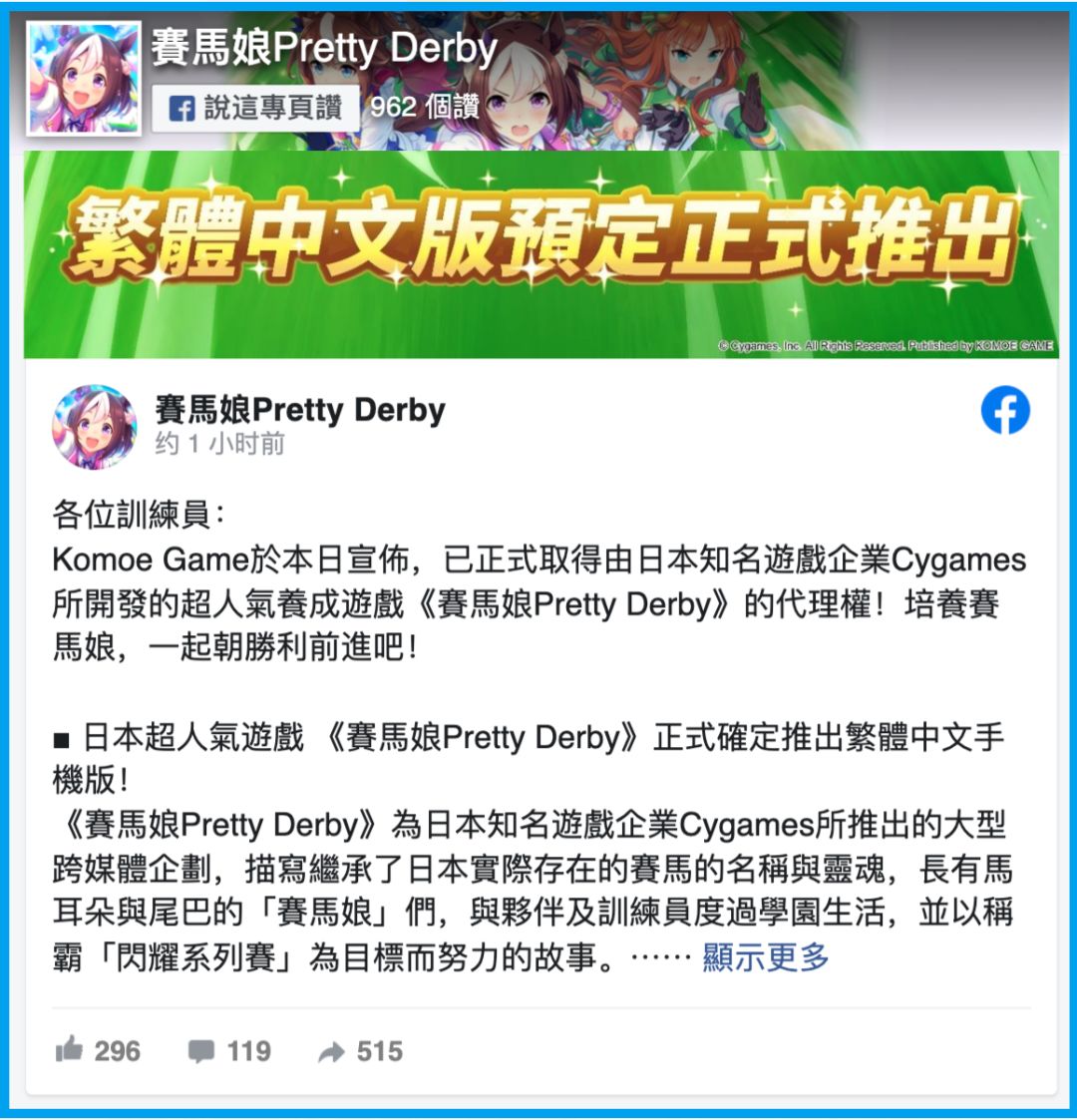 《赛马娘》将推出繁体中文版,你的爱马有中文了!