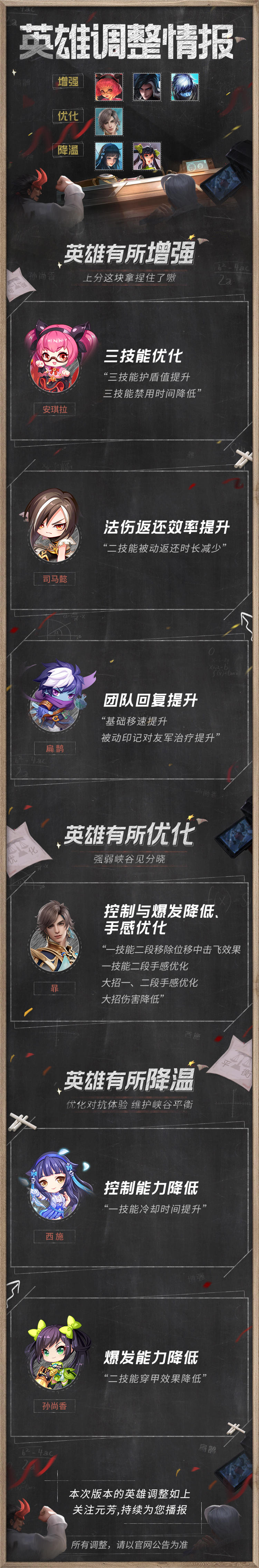 英雄调整情报丨安琪拉、司马懿、扁鹊增强