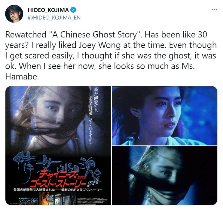 近日,日本著名游戏制作人小岛秀夫重温了1987年程小东导演张国荣、王祖贤主演的经典影片《倩女幽魂》,小岛秀夫表示,他当时超级喜欢王祖贤。