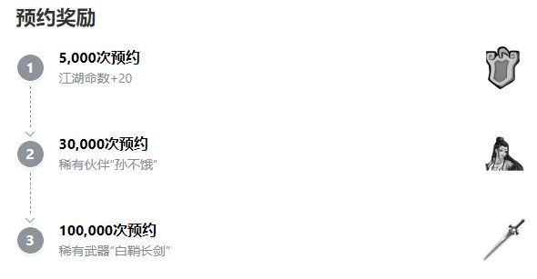 当预约达到三万之时,孙不饿将在第一次历险中成为各位的初始搭档,之后的游戏中也将成为可供招募的初始伙伴;随着江湖历险的不断深入,玩家与各位伙伴之间的羁绊也将不断加深,同时也会有更多的同道加入到这一旅程之中——是喜结连理还是义结金兰,这些都由你来决定。