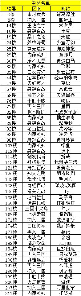 以上就是本期活动的中奖名单,恭喜这五十位主公大人各获得新春礼包一份!