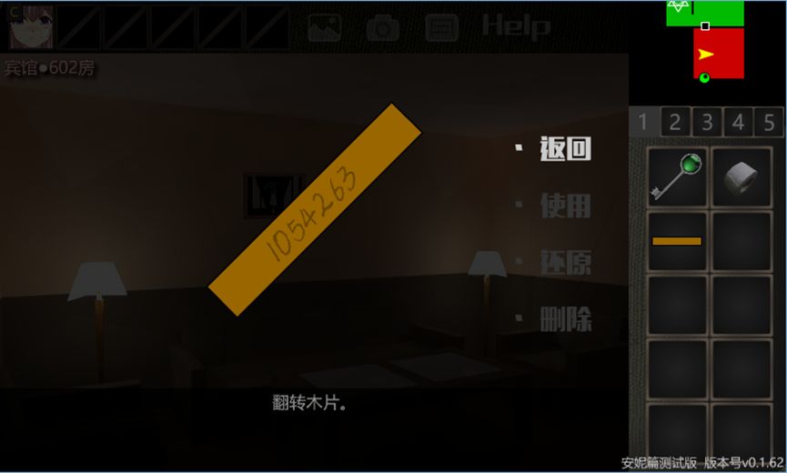 7.右转,取走桌子上的【木片】。观察并翻转【木片】,观察到7位数字。靠近角落的灯,取走旁边的【钥匙卡P】。
