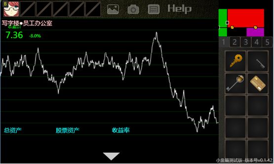 11.剧情结束后,取走【银行卡】。后退2次,点击左后侧的办公桌,点击蓝色屏幕,是股票走势图。剧情结束后,点击“尝试一下”(选择什么都一样),进入股票游戏。随意操作(买进100股、卖出100股、观望)都不影响结局,直到结束。注意到走势线的形状和每一段走势线的停止点(可以通过回放来观察)。