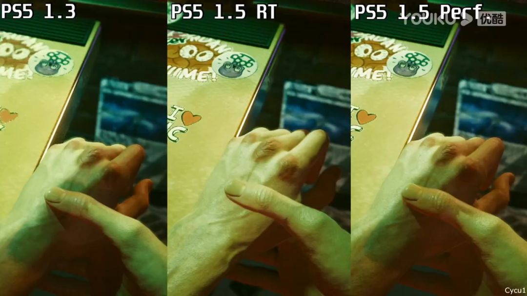 1.3补丁(PS4向下兼容版本)和1.5原生版本的画面对比视频。其中PS5有两个展示模式:性能模式(动态4K/60FPS)以及光追模式(动态4K/30FPS+光追阴影)。
