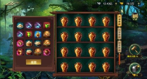 陶罐数量有16个,每个都对应了不同的物品,当然贴心的我们,准备了16个免费的榔头供大家砸罐,当免费榔头使用完后,还想继续砸罐,可以花费金币代替榔头砸罐,如果不想一个个砸可以开启“炸弹”功能,一次性开启全部的奖品,当你砸到一半不想继续想要,想要新的一批陶罐就可以重置陶罐和奖品,当然砸罐开出的奖品也需要运气,就看各位主公的手气喽。
