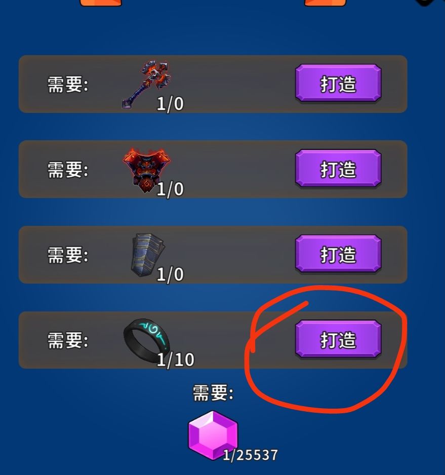 存档完成后,手动点击打造宝物,在读档冷却可以打造出将近16把橙装,仔细看橙装中有没有极限词条,没有就读档,有就存档,等待下次一小时冷却。