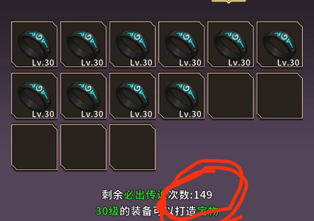 手动按宝箱存储10个30级装备,并使用非酋救星(宝物),然后存档。