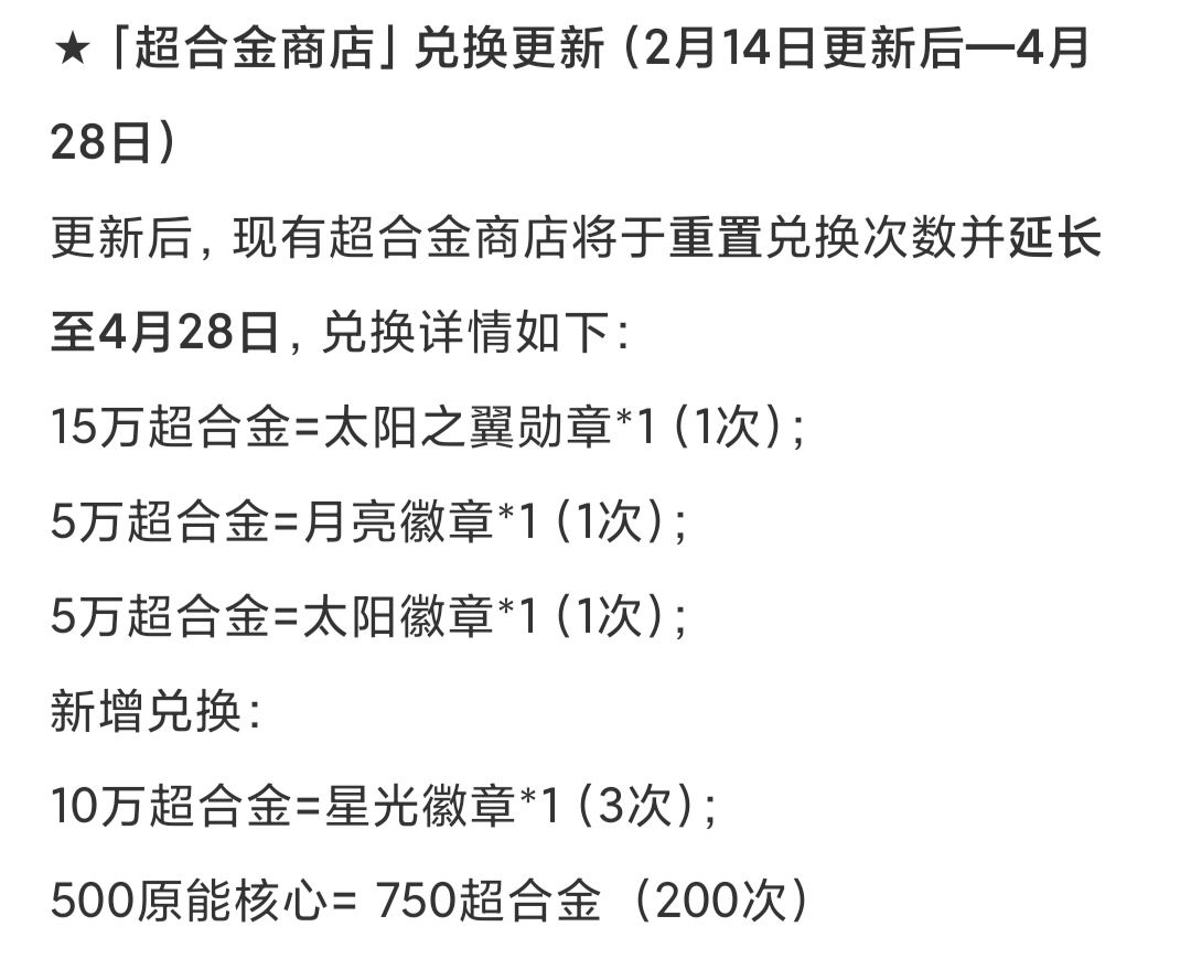 注:很急可以换,量还可以,保守估计两个月结算可以换三万合金以上,可完成目标1/10,需结合原能核心商店使用,建议作为底牌兑换