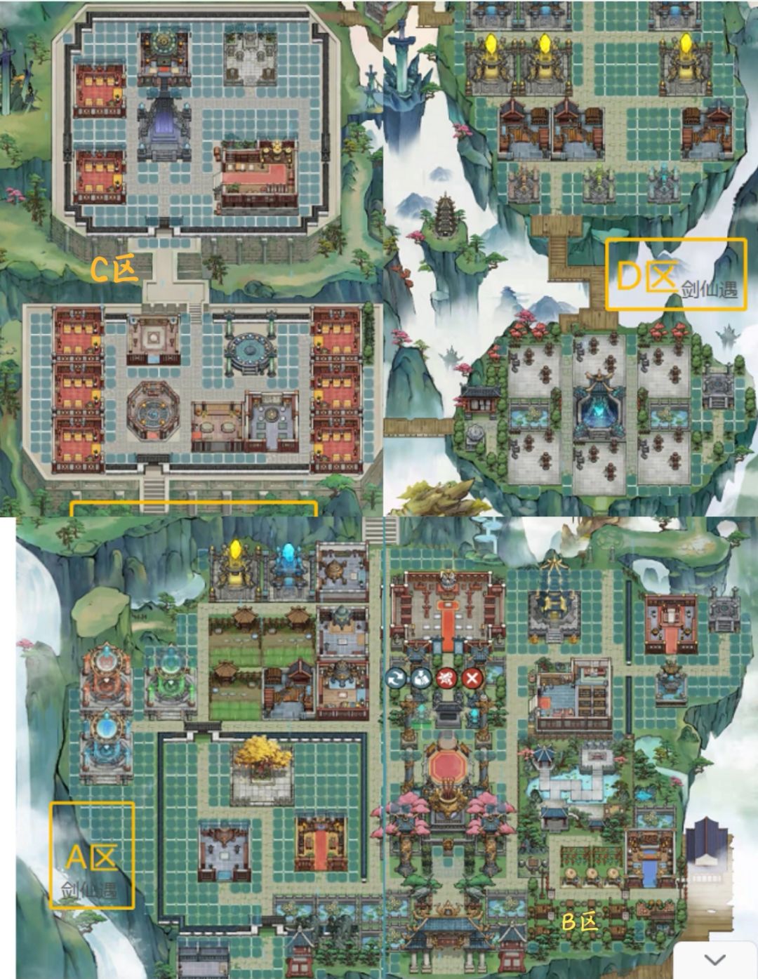 2,本次将仙门划分了四个区,简单的说就是A区(工业区),B区(掌门+贸易区),C区(修炼区),D区(资源区)。