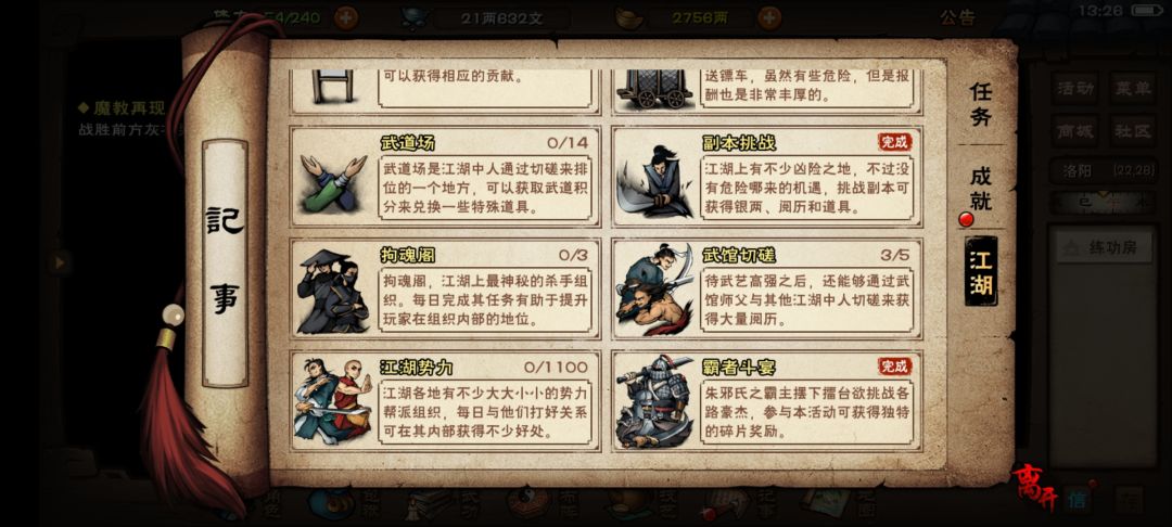 说这么多,就是给种草期里不知道干什么的小伙伴说一声,还有更多办法缩短游戏流程,不要执着于等待。合理利用游戏资源,节约现实时间。会让游戏体验更好。(关于缺阅历,镇派武学升到10重,不要点满节约35万阅历)