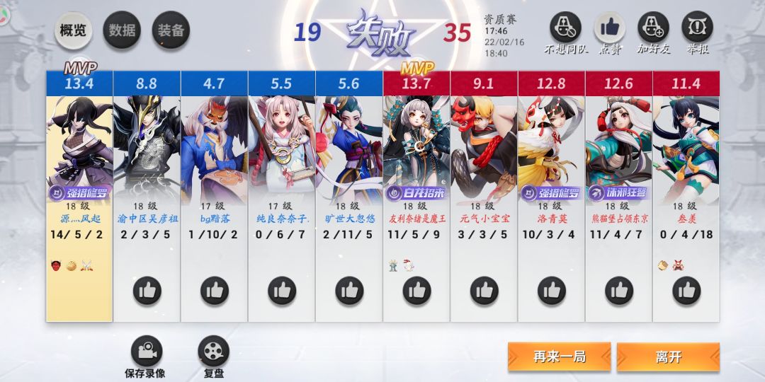 总结:平衡有待提高,牛马东西举报不痛不痒扣8分?缘结神没有双排就关小黑屋吧,一局下来不是点开战绩版我都不晓得下路还有个缘结神。