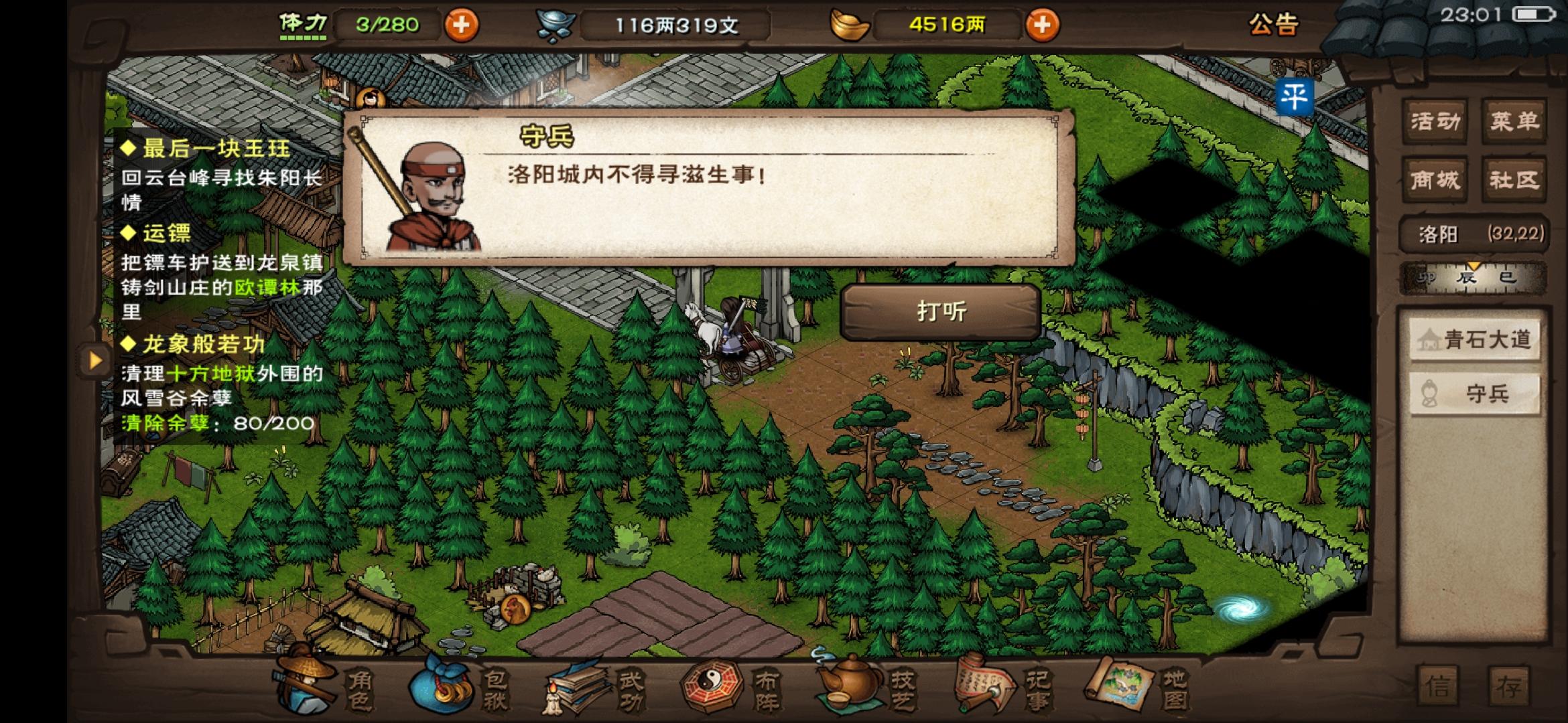 押镖去铸剑山庄,这个守兵拦住我检查,说七煞门啥的,让我杀七煞门的给他报仇还是啥的,到了铸剑山庄,有个交谈,然后就给了我几个材料。看洛阳支线居然没有