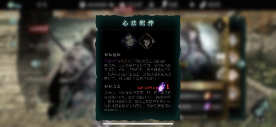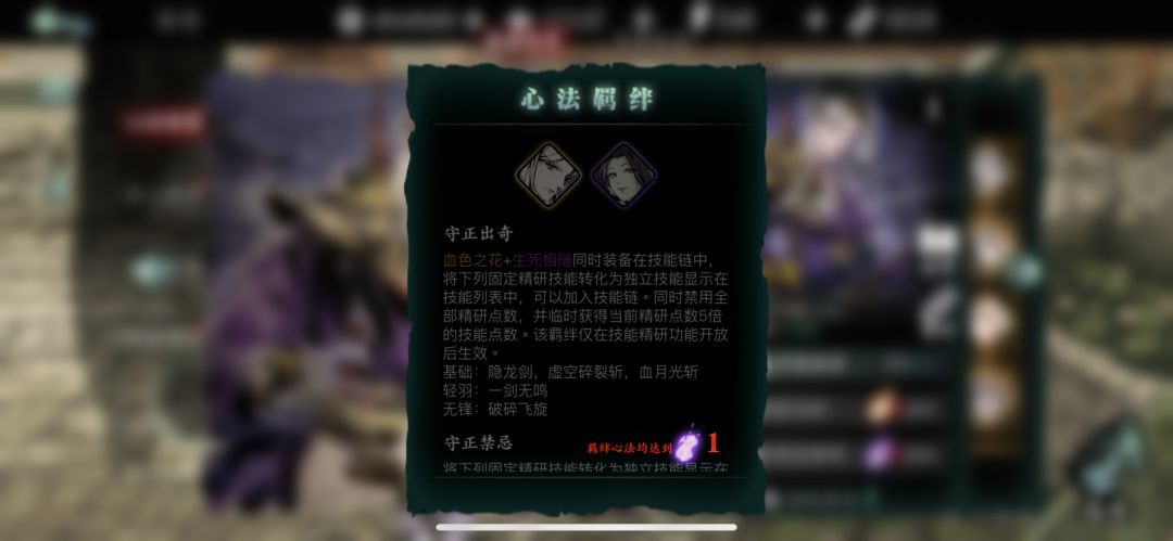 (2)羁绊是能够将精研技能挂在技能链上,也是很多萌新常问的“为什么你这么多技能呀”的出处。