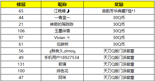 小试牛刀奖*5:天刀Q版门派徽章(三个)