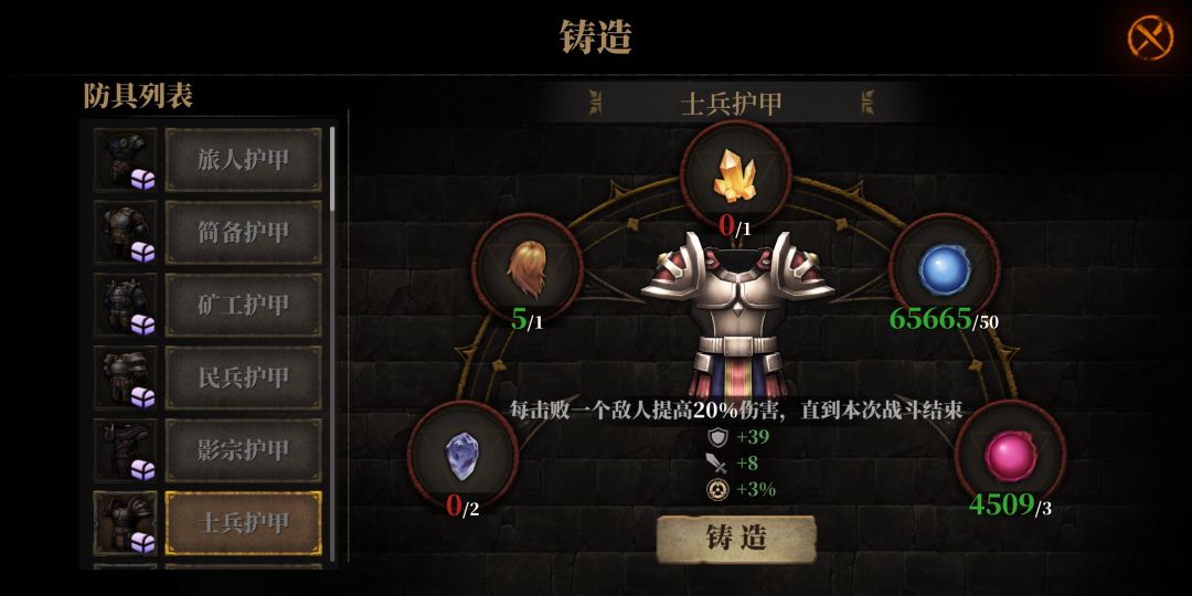 然后就是护甲:士兵护甲 打剧情火山水晶巨兽解锁材料使用高阶挑战的水晶巨兽的水晶和剧情通关掉的巨兽毛发。时装可以用也可以不用穿不穿都不影响。